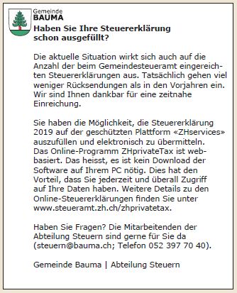 Gemeinde Bauma | Abteilung Steuern